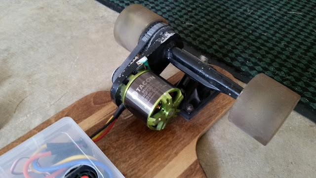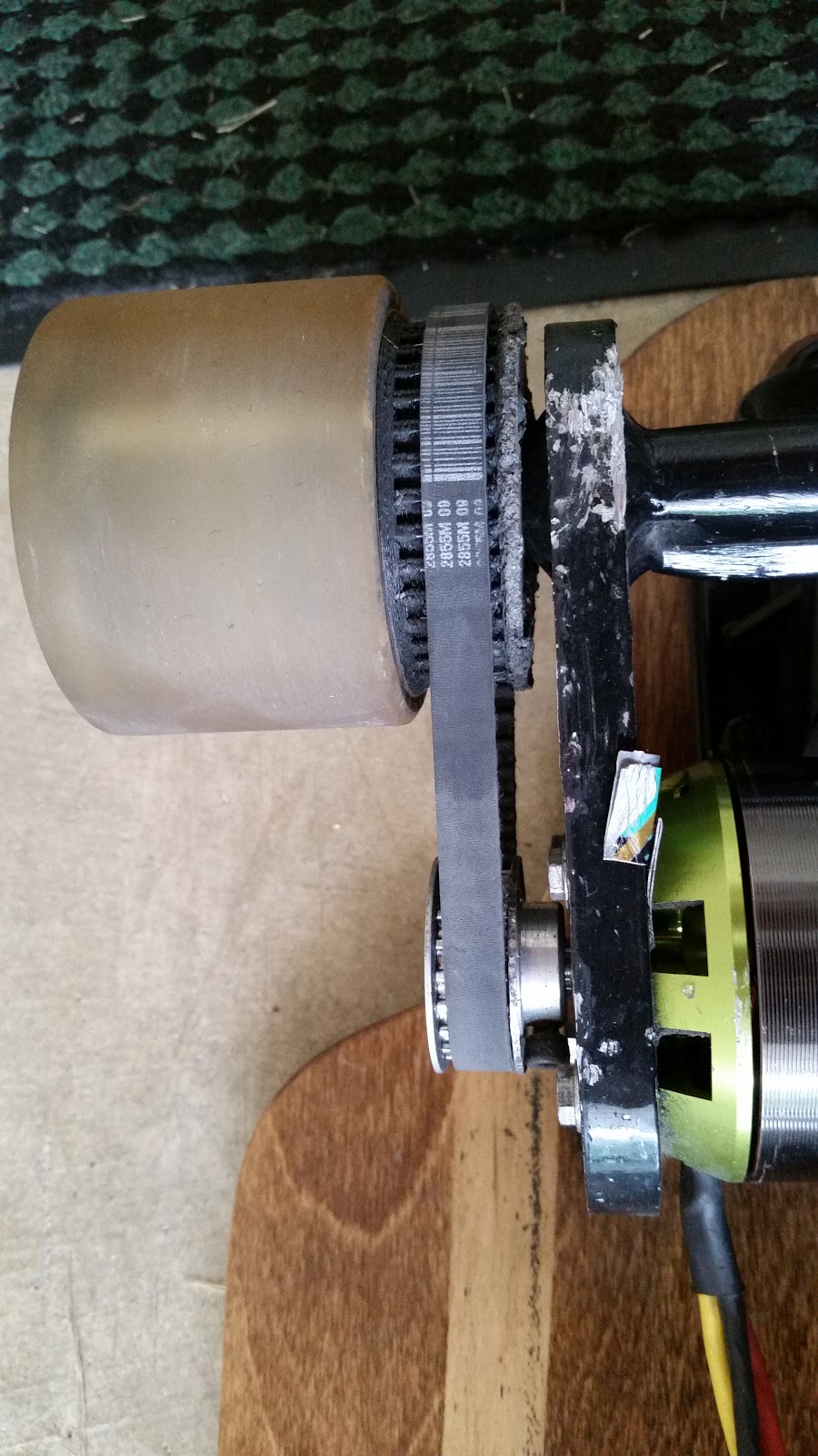 </div><div class="separator" style="clear: both; text-align: left;">Final Thoughts</div><div class="separator" style="clear: both; text-align: left;">I am very happy with how this build turned out. I have the perfect amount of torque and just enough gearing for great speed (25mph top speed). I may really regret using cheap trucks in the future. Only broken one belt so far. I can get about 5 - 6 miles on the 5000mAh batteries. Happy to answer and questions about the build.</div>